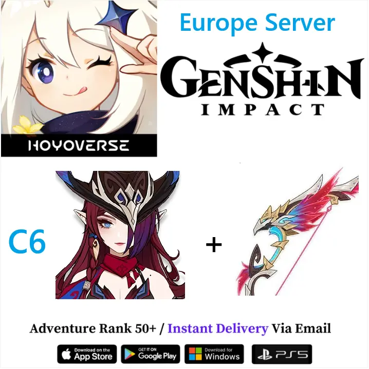 Genshin Impact | [Europe] C6 Chasca + Astral Vulture’s Crimson Plumage(Bow) | Genshin Impact 5 Stars Characters Account