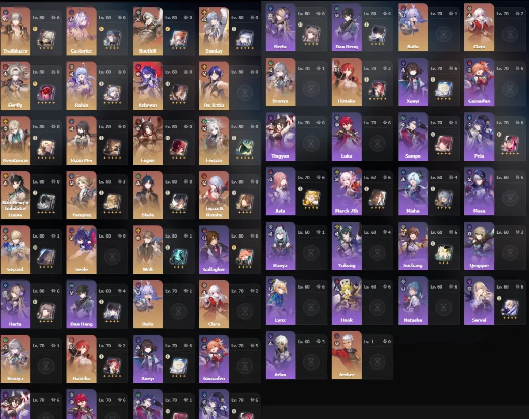 Honkai Star Rail | EU Multi-Account | HSR 24 Legends + 11 Cones | Genshin 24 Legs + 5 Weapons | Wanderer (C2) + Sign | Castorice | Firefly | Acheron | Full Access