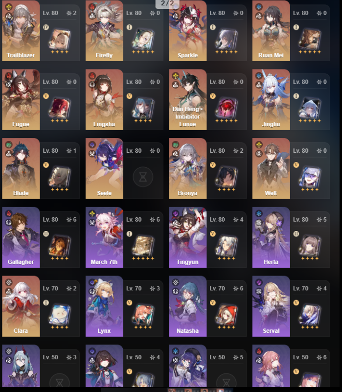 Honkai Star Rail | Level 70 | 39 Characters, 16 Legendary | Bronya C2, Clara C2, Blade C1, Himeko C1, Gepard C1, Welt, Sparkle, Ruan Mei, Fugue – chicksrail2 fff